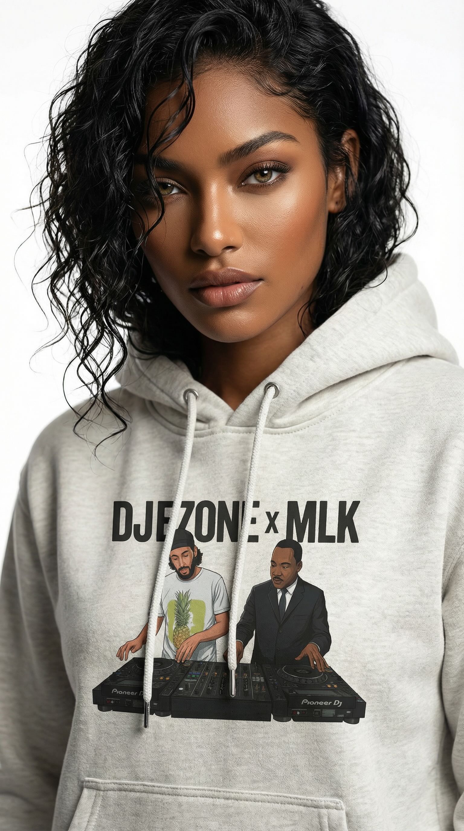 DJ Turntable Collaboration Hoodie — 'DJEZONI x MLK' Graphic Fleece Pullover