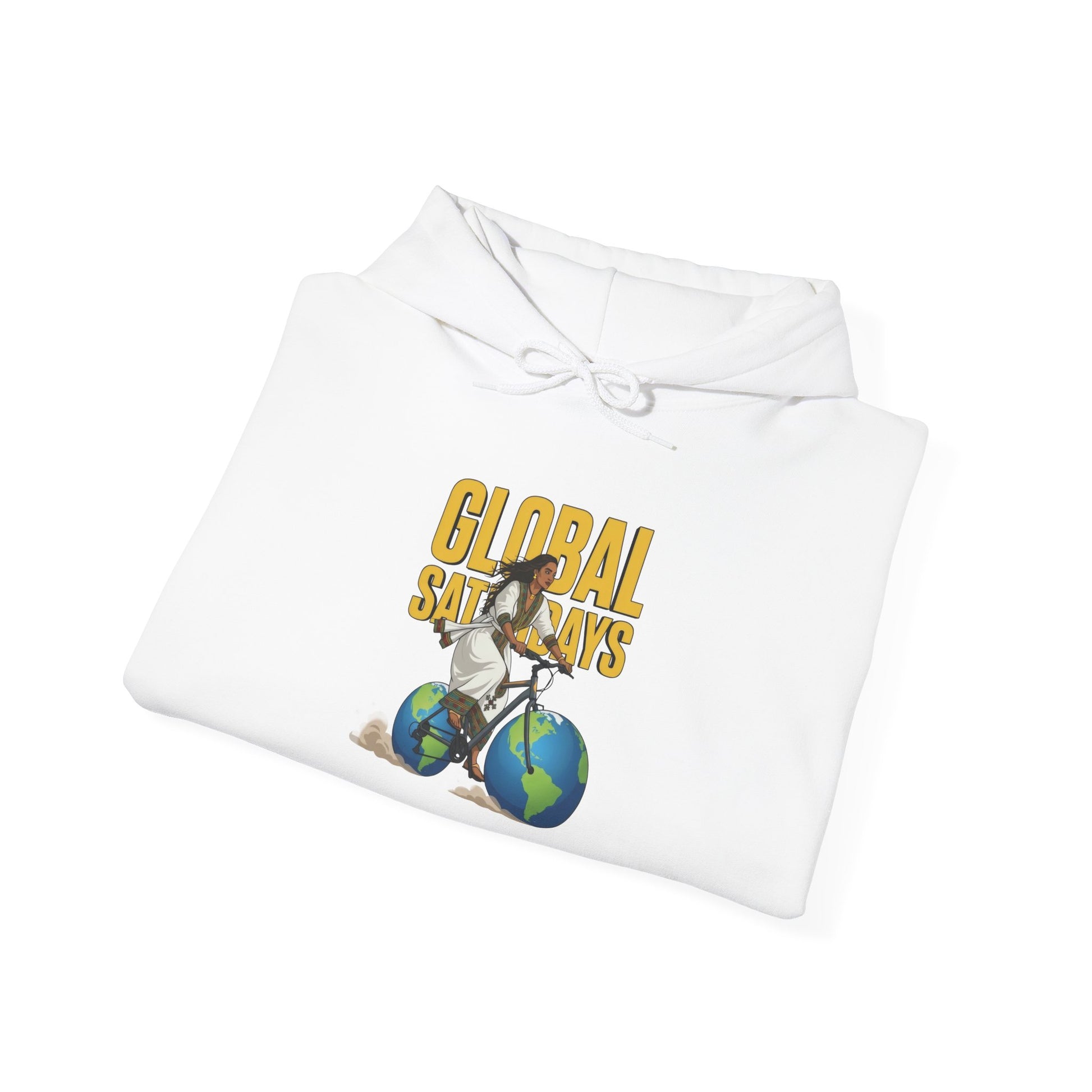 Soft, roomy hoodie with a playful travel-themed print that celebrates wanderlust and big dreams. The design shows a person riding bicycles made from globes, balanced beneath bold, sunny lettering — a warm reminder to keep exploring, even on ordinary days. The medium-heavy cotton/poly blend feels cozy against the skin and holds vibrant prints well, while the double-lined hood and color-matched drawcord add durable, thoughtful details. Slip it on for cool mornings, long transit days, or quiet evenings at home; the kangaroo pocket keeps hands warm and small essentials close.