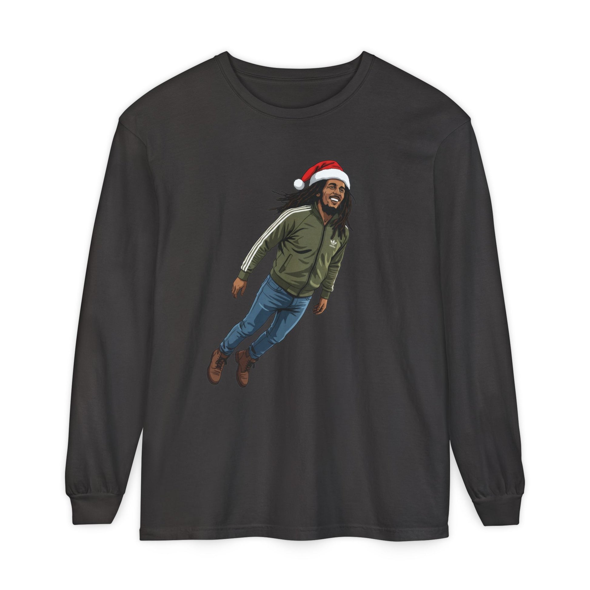 A laid-back long sleeve that feels like a cozy evening around a bonfire. This garment-dyed cotton tee carries a relaxed, lived-in color and a soft hand that only gets better with wear. The artwork—an easygoing, smiling figure in a Santa hat—adds a playful, slightly irreverent holiday twist that fits into casual winter gatherings, record-listening nights, or slow walks through twinkling streets. Lightweight yet substantial, the classic fit hangs naturally and layers smoothly under jackets or over hoodies. Wear it to bring a warm, personal touch to low-key seasonal moments.